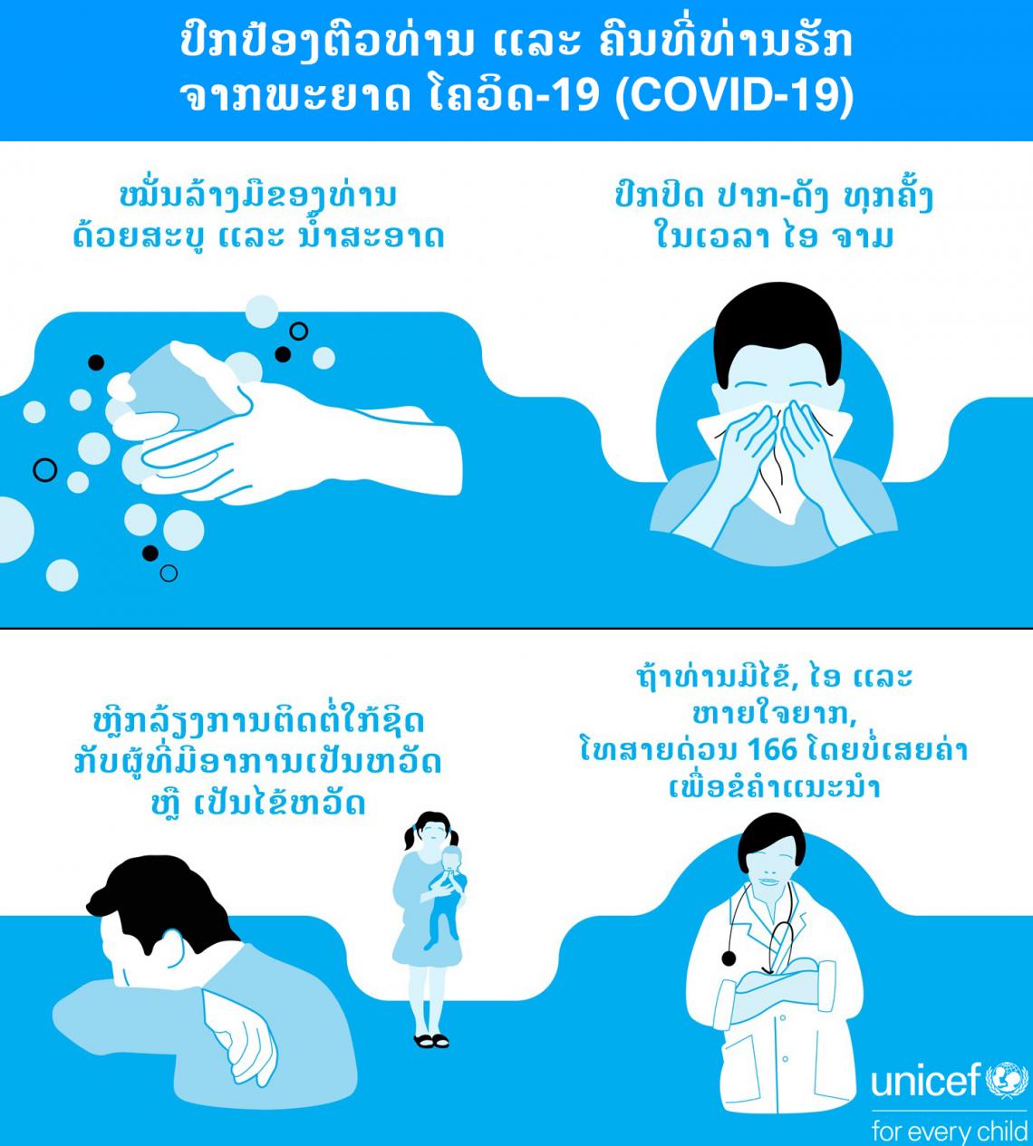 ປົກປ້ອງຕົວທ່ານເອງ ແລະ ຄອບຄົວຂອງທ່ານຈາກ ພະຍາດປອດອັກເສບ COVID-19 [UNICEF Laos]